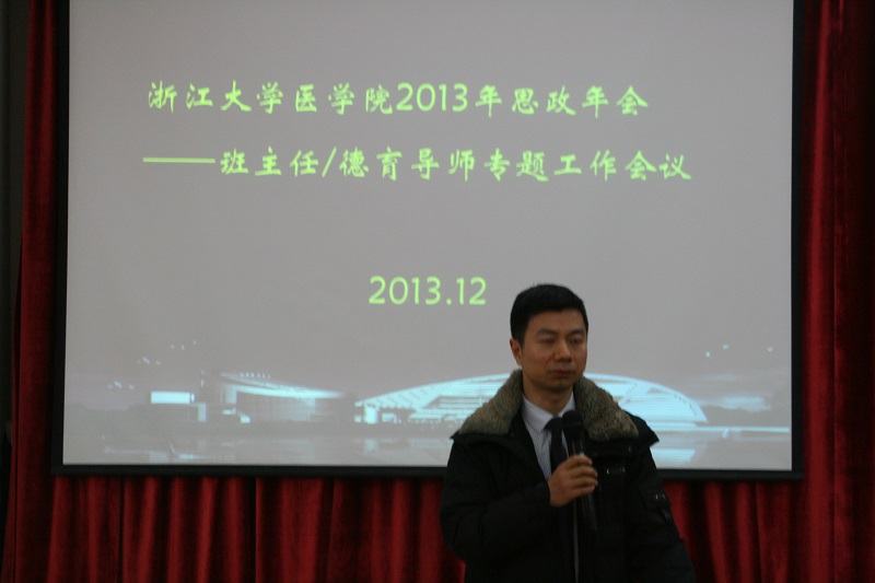 会议最后,陈智常务副院长作总结发言,明确了在深入学习贯彻党的十八届三中全会精神,全面实施浙江大学“六高战略”的过程中,医学院对培养具有国际视野的卓越医学人才的高度重视。就学生培养过程中如何处理专业教师及思政教师之间的关系,如何激励思政教师的积极性,提升学院学生思政管理水平等作出了重要指示。对学校领导的关心支持,兄弟学院的指导协助,以及班主任、德育导师等在教学管理工作中的辛勤付出表达了深深的谢意。