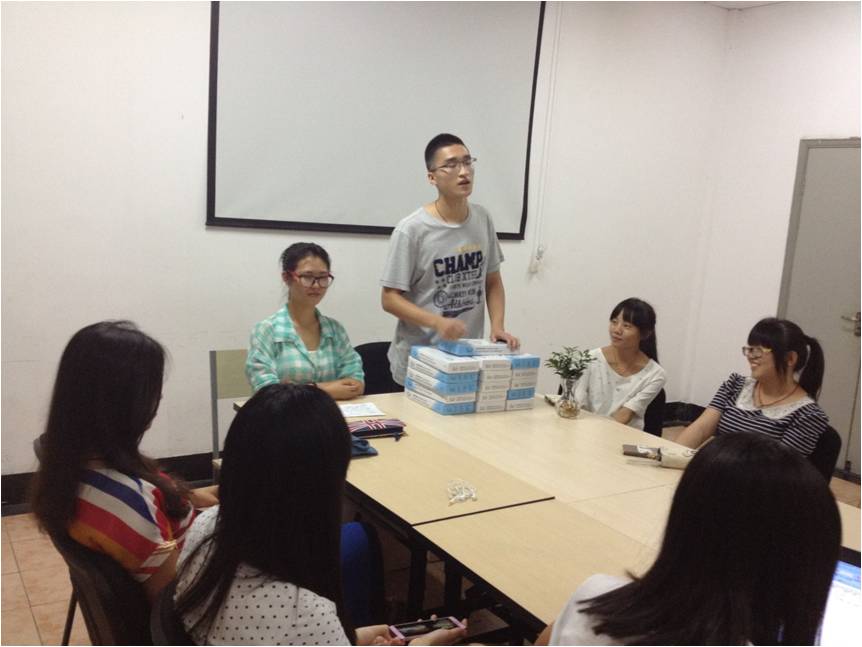 在大家进行了自我介绍之后,首先是原1204班班长张学优同学宣布了上一学期1204班以寝室为单位的目标完成情况。其中,蓝五6011寝室和5047寝室分别达成了去三个不同的省份和评的十佳寝室的目标,分别得到一盆竹柏作为奖励。同时,在新学期开始之际,1206的每个寝室也都定下了新的目标。