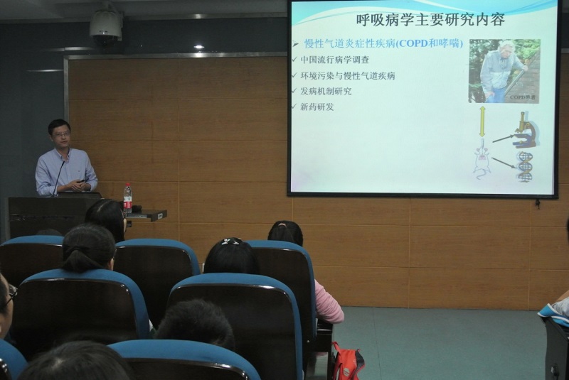 第一位嘉宾徐峰老师向同学们介绍了他的研究方向——肺部细菌感染的免疫学发病机制和防治研究。他详细介绍了呼吸病学概况和主要研究领域。他指出中国呼吸病学总体上落后于欧美国家,在呼吸疾病发病机制、诊治技术上缺少重要的创新和突破。但在亚太地区,中国有一定的优势,比如急性肺损伤基础研究、肺血管病诊治等等。因此,呼吸专科医生任重道远。然后,徐老师与同学们分享了诺贝尔奖获得者山中伸弥的故事。山中伸弥年轻时学术成就并不是特别高,博士期间了解和痴迷于基因敲除和转基因技术。博士后研究APOB mRNA的编辑蛋白ApoBEC1。山中伸弥认为,科学是不可预测的,没有充足把握,不要轻易在病人身上做实验。之后研究如何从终末分化的成体细胞变回多能的干细胞,当时的主流观点是,细胞单向分化。山中伸弥当时的工作是鉴定参与维持干细胞多能性的因子。从山中伸弥的事例中可以看出:在科学研究中,人要有一颗坚强的心,百折不饶;有敏锐的大脑,多想多看,训练扎实的专业技能。之后徐峰老师提出了给医学生的几点建议。1、一心向学:大学是学习的黄金时代,它奠定了一生事业的基础。2、结交良师益友。3、培养创新精神。4、不轻言放弃。