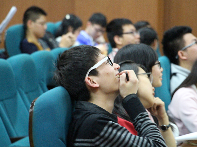 当这一切告一段落,侯百谦老师做了深刻的点评,他肯定了选手们的出色表现,同时指出活动中的趣味学习和激励机制可以渗透进平时的学习中。此外,他还就“专业词汇的认识与使用、交际与学术”,“记忆的短期与长期”等以同学们分享了自己的观点,让参赛选手和观众们都受益匪浅。最后,侯老师还真诚地勉励大家说“学无止境,功在平时。”