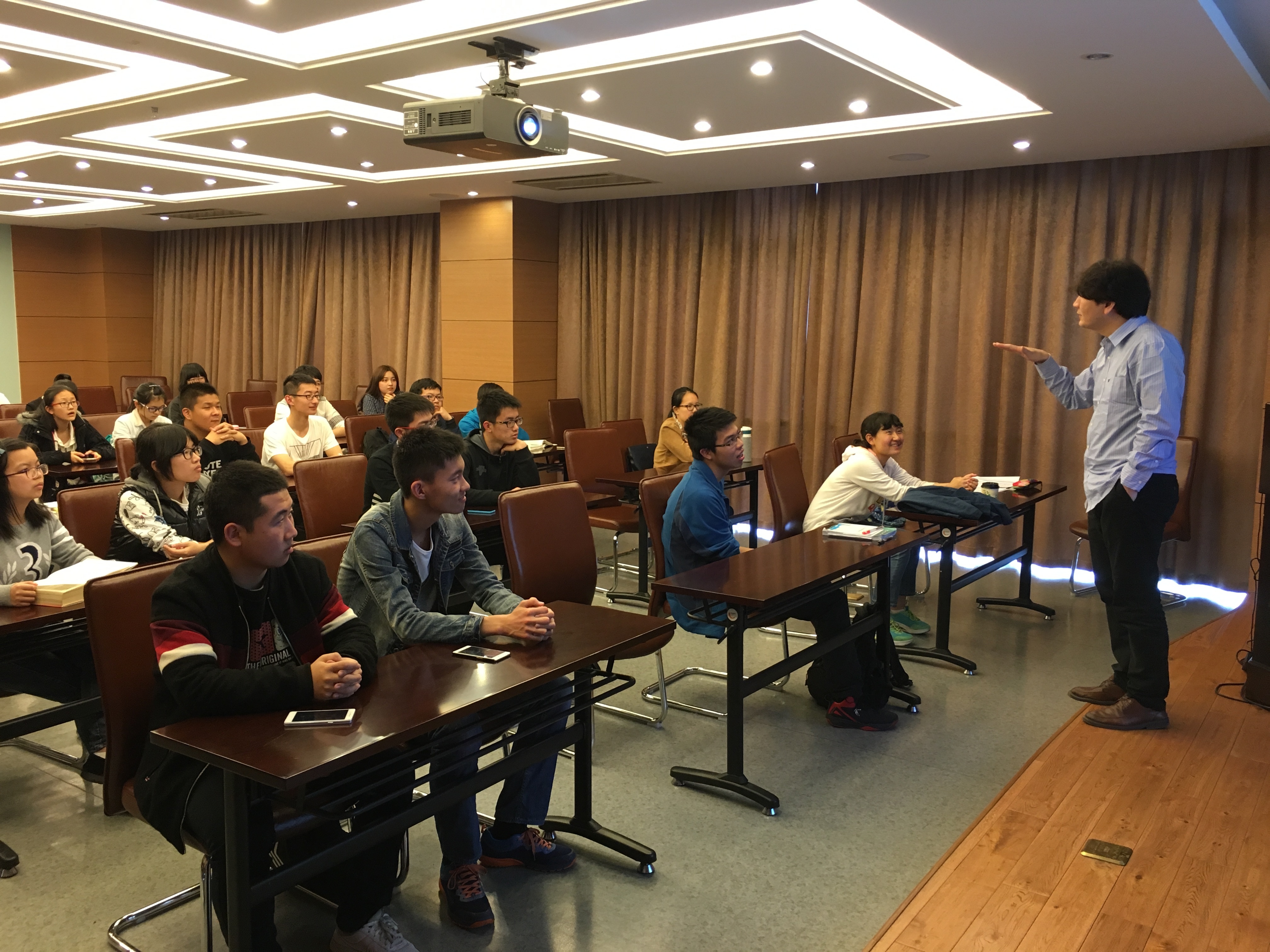 201649日医学综合楼705的下午,那仁满都拉老师,这个名字象征着太阳的升起的科学家,以“科研的道路”为题,为在场的同学们讲述了自身的科研经历以及为同学们提供了自身发展方向的建议。