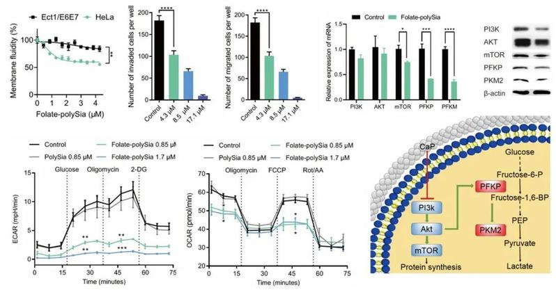 发生钙化的肿瘤细胞的膜流动性、增殖能力、侵袭迁移能力均受到了明显影响。转录组分析表明,钙化能影响肿瘤细胞的蛋白结合能力,引起信号转导出现异常,最终导致细胞代谢出现紊乱。进一步分析证明,钙化能显著降低肿瘤细胞的糖酵解和有氧呼吸水平,限制细胞能量供给。