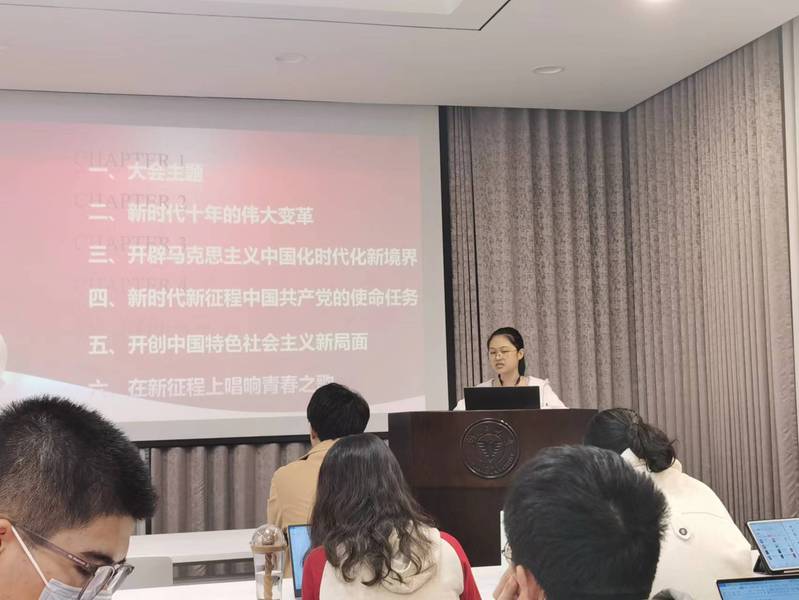 10月29日,临床医学(5+3)5班、6班团支部同学齐聚一堂,召开学习贯彻二十大精神的党章专题学习。本月党章学习以“投身新时代,奋进新征程”为主题,以深入学习党的二十大精神为主要内容,并开展集中交流讨论。活动中,蔡博涵、任盈盈两位同学以党团课的形式向大家讲授二十大相关精神。两位同学从大会主题、新时代十年的伟大变革、开辟马克思主义中国化时代化新境界,新时代新征程中国共产党的使命任务、开创中国特色社会主义新局面等六个篇章展开本次讲授。